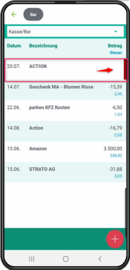 Wird ein Eintrag ohne das Datum bzw. Betragsfeld erfasst wird die Position mit einem roten Balken gekennzeichnet.