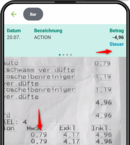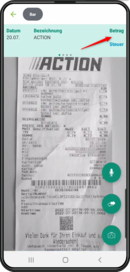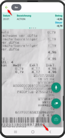 ![]() Tippen Sie auf das leere Betragsfeld und zoomen auf dem Beleg zum Brutto-Betrag. Nun markieren Sie diesen Betrag und fügen ihn dem Feld "Betrag" unseres Beleges hinzu. Mit dem Häckchen-Symbol speichern Sie die Änderung.
