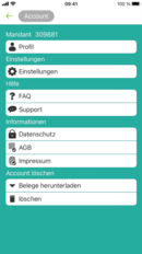 Im Kachel Account können Sie verschiedene Einstellungen in App durchgeführen.