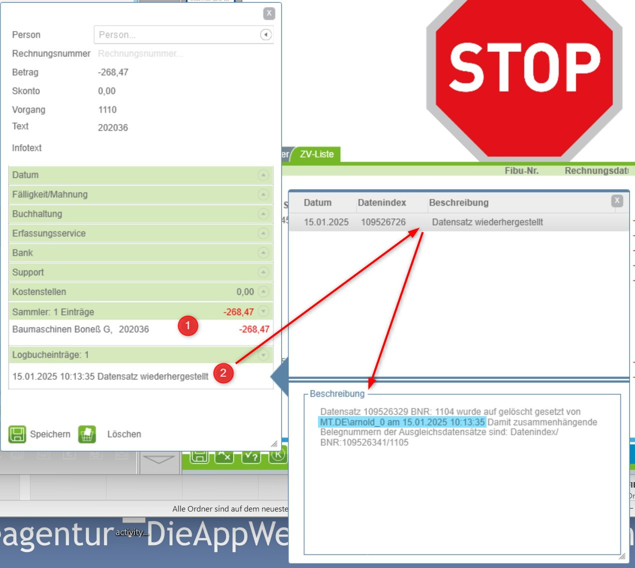 (2) Zudem lässt sich bei WIederherstellung einer Zuordnung nachvollziehen, wann und an welchem Arbeitsplatz/Rechner eine gewählte Zuordnung deaktiviert wurde.