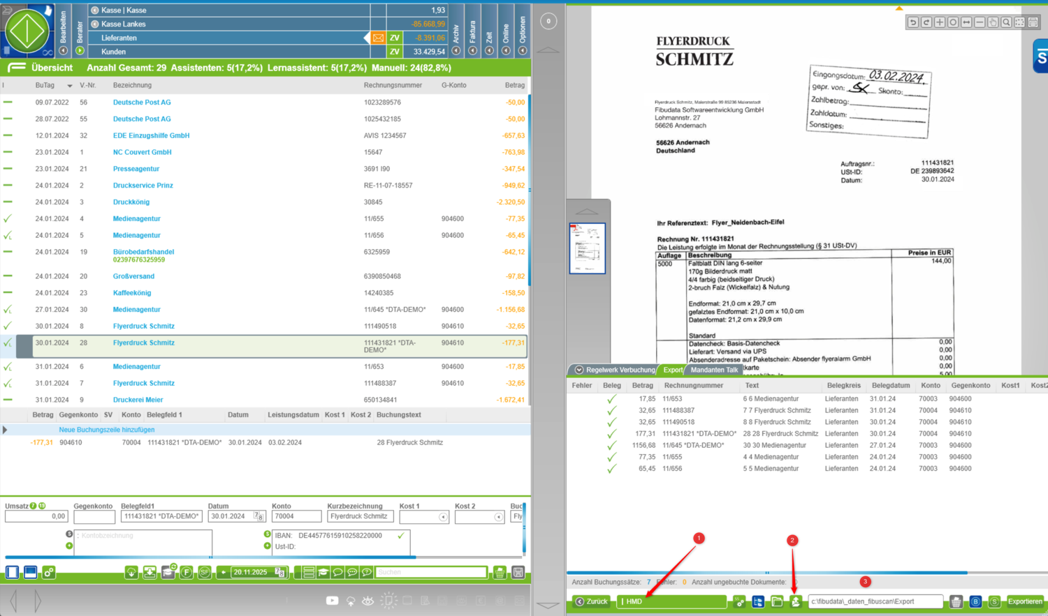 Um Datenexport in das Finanzbuchhaltungsprogramm HMD ist die entsprechende Schnittstelle auzuwählen: