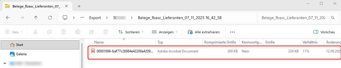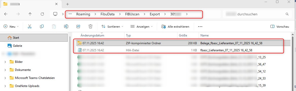 2. Die ausgewählten Daten werden in den dafür vorbelegten Datenpfad exportiert, welcher hier angezeigt wird. Die Anlage des Datenpfad finden Sie hier.
