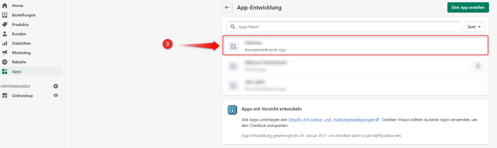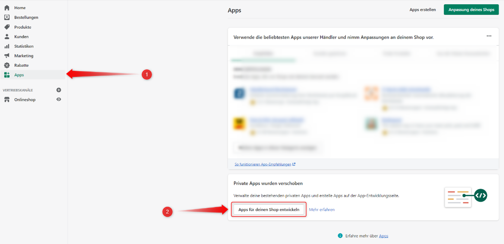 Schritt 2: Klicken Sie auf den Button „Apps für deinen Shop entwickeln“.