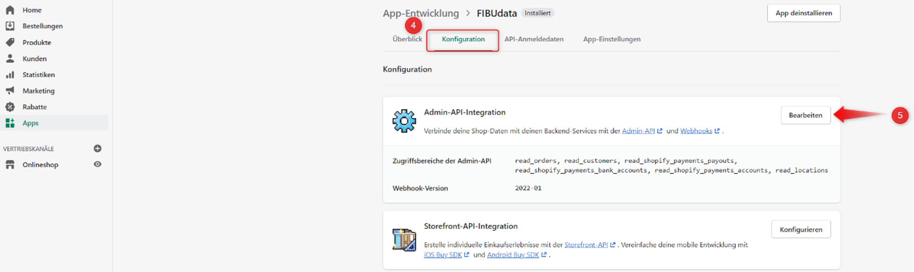 Schritt 5: Klicken Sie auf den Button „Admin-API-Bereiche konfigurieren“.